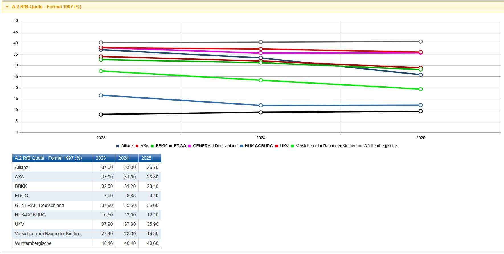 Geschäftsberichte & Kennzahlen 2025 Im KV-Lux sind aktuell die Daten von 14 privaten Krankenversicherern veröffentlicht. Dazu gehören: Allianz Private Krankenversicherung Alte Oldenburger Krankenversicherung AG AXA Krankenversicherung AG Bayerische Beamtenkrankenkasse AG …